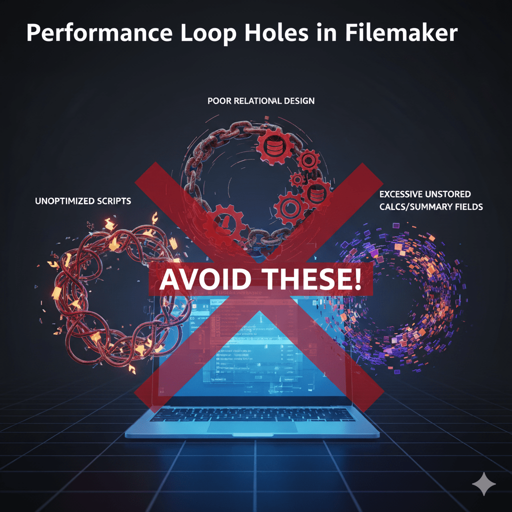 What slows down FileMaker solutions, what to avoid, and best practices to fix or prevent them. Useful if you’re designing, optimizing, or maintaining a FileMaker database. What Causes FileMaker to Be Slow — Common Performance Bottlenecks These are the typical weak spots (“loops” where performance degrades) in FileMaker systems, especially when they scale or are […]
